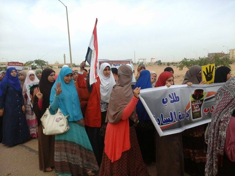 انطلقت مسيره من كليه التربيه جامعه السادات متجهة إلي كليه دراسات اسلامية للتنديد باقتحام الأمن المدينه الجامعيه لطلاب الازهر بالقاهرة وقتل الطلبه والتنديد بممارسات القمع التي تنفذها قوات الانقلاب ضد الطلبة.