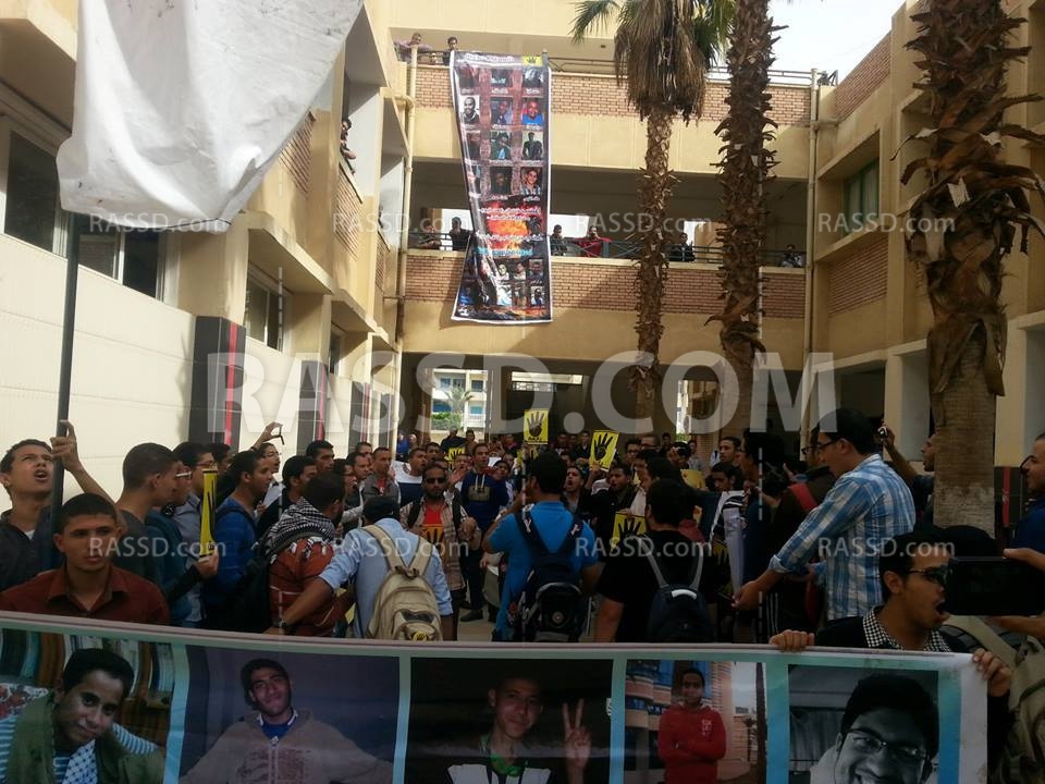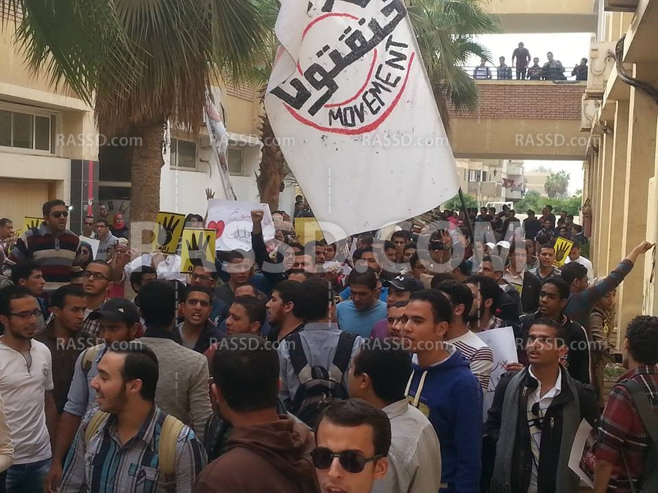 يذكر أن الطلاب قاموا بالخروج من الحرم الجامعي و عمل مسيرة حتى ميدآن صيدناوي بالعاشر من رمضان و سط تفاعل كبير من المارة و السكان في العمارات المجاورة.