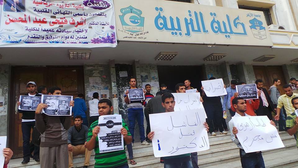 فيما استمر إضرآب طلاب كلية طب وصيدلة الأزهر بدميآط الجديدةمنددين بإعتقال وقتل زملائهم الطلاب ومطالبين بالإفراج عن عميد الكلية الدكتور أشرف التابعى.
