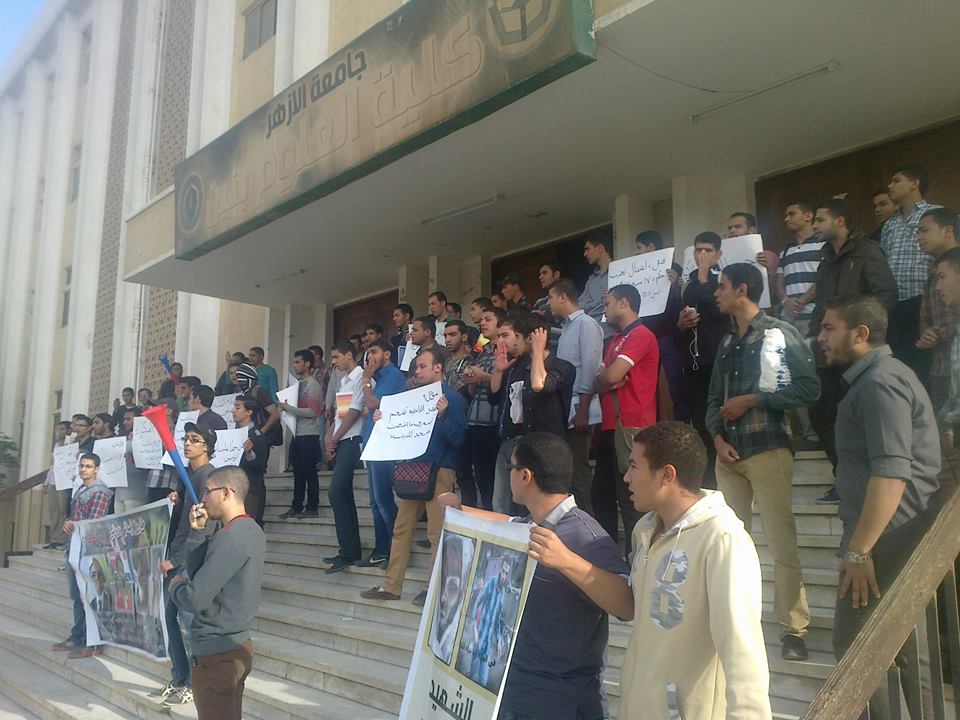 أضرب طلاب جامعة الأزهر بالقاهرة عن الدراسة في كلية الطب واللغات والتربية إعتراضاً علي إعتقال زملائهم في الأحداث الأخيرة.