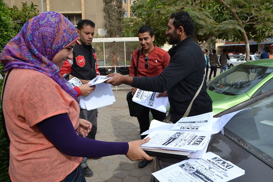 نظم مجموعة من الشباب داخل جامعة الزقازيق حملة للتوعية تهدف إلي مقاطعة التاكسى لاستغلال السائقين وفرض اجره كبيره على...