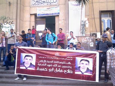 قام اليوم طلاب كلية لغه عربيه بجامعة الأزهر بالدراسه بالإضراب لثالث يوم على التوالي عن الدراسه وذلك تلبية لما جاء في بيان اتحاد الطلاب بعد استشهاد الطالب عبد الغني يوم الأربعاء ثم استشهاد الطالبصلاح عادل ابو حميده الطالب بكلية لغه عربيه.