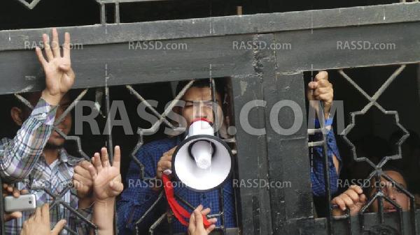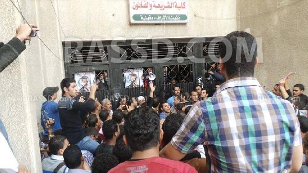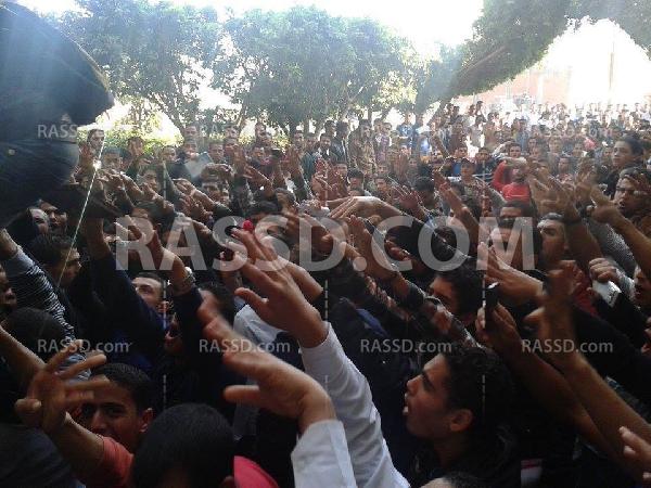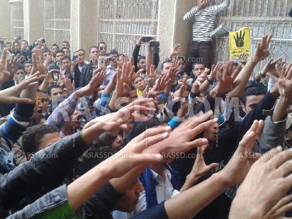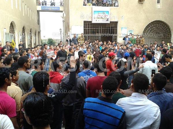 وردد الطلاب هتافات "يسقط يسقط حكم العسكر" ، "الإنقلاب هو الإرهاب"، مكتوب على سور الزنزانة حكم العسكر عار وخيانة ، شمال يمين طلعوا المعتقلين ، العبيد عايزين بيادة والأحرار عايزين شهادة ، إقتل واحد إقتل 100 مش هتراجع عن الشرعية وأشاروا بعلامة رابعة العدوية