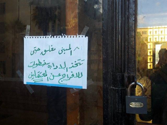 أغلق طلاب هندسة الاسكندرية مبني الإدارة منذ بداية اليوم بعد دعوات للتصعيد ضد الإدارة لمطالبتها بإتخاذ موقف قوي يساند الطلاب و أعضاء هيئة التدريس المعتقلين .