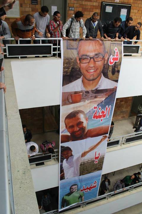 نظم طلاب الأكاديميه العربيه للعلوم والتكنولوجيا والنقل البحرى بالاسكندرية فاعليه بعنوان " عبده فين " للتعريف بشهداء الأكاديمية " أحمد عبده وسهيل عمار والزناتى والمنياوى " داخل مقر كليه الهندسه