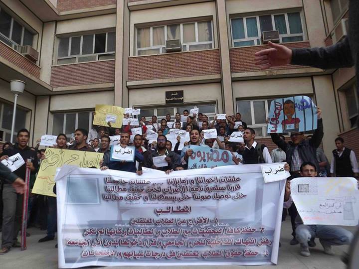 وأعلن الطلاب عن مطالبهم التي تتلخص في الإفراج عن زملائهم المعتقلين، وعدم السماح للداخلية بالتعامل مع الطلاب داخل الجامعة، وحفظ كافة التحقيقات الجامعية مع الطلاب، وكأنها لم تكن، علاوة على حفظ حقوق الطلاب المعتقلين، في درجات الغياب والامتحانات.