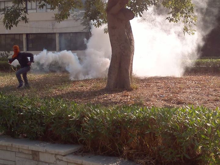 شنت قوات داخلية الانقلاب ،اليوم الاثنين، هجوماً بقنابل الغاز المسيل للدموع، داخل جامعة الأزهر بالقاهرة، واستهدفت مسيرة كانت تتجمع أمام بوابة كلية الطب، اعتراضا علي ما حدث أمس من اعتداء للأمن علي الطلبة في المدينة الجامعية بمدينة نصر.