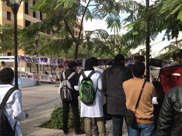 رابعة والنهضة في معرض صور ضد الانقلاب بجامعة 6 أكتوبر