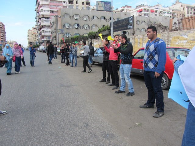 نظمت حركة طلاب ضد الانقلاب صباح اليوم سلسلة بشريه أمام كلية التربيه النوعيه بجامعة بورسعيد بشارع 23 يوليو تنديدا بحكم العسكر وتضامنا مع طلاب الأزهر ومقتل طالبين أمس واعتقال واصابة العشرات.