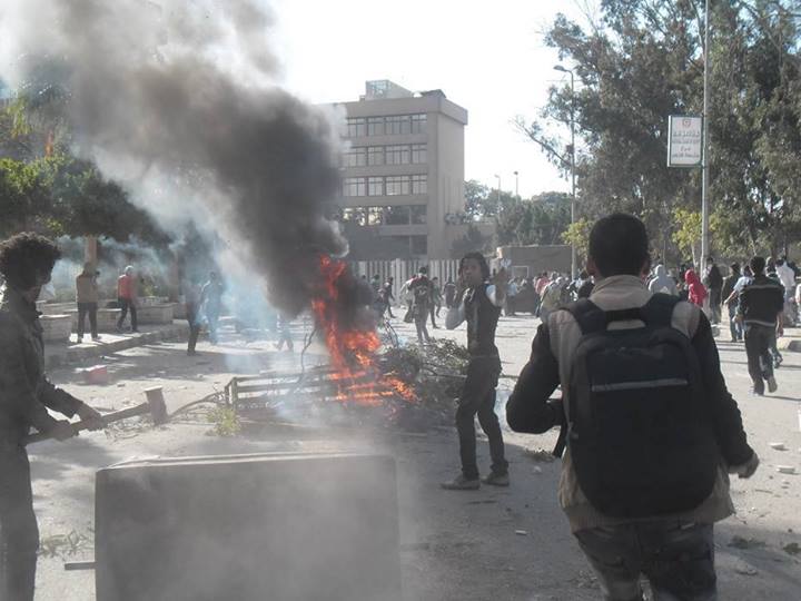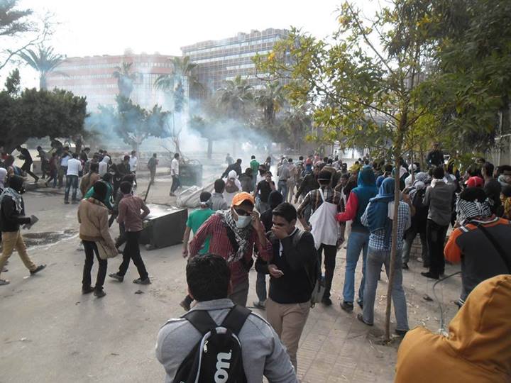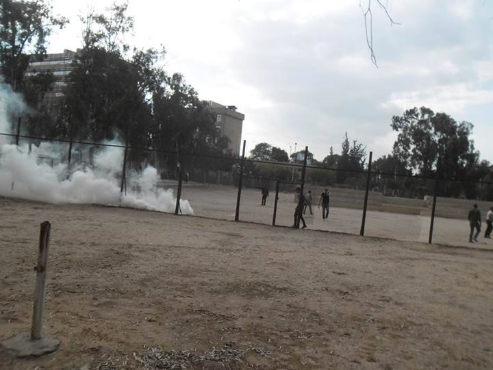 وقامت قوات أمن الانقلاب بإطلاق الغاز على الطلاب لمنع خروج المسيرة خارج الحرم الجامعى للمطالبة بالقصاص للشهداء من زملائهم، ويقوم الطلاب حاليا بالانسحاب من أمام باب كلية الطب إلى المدينة الجامعية بعد علمهم بقدوم حشود من داخلية الانقلاب أمام باب كلية الزراعة استعدادا لاقتحام الجامعة ومحاصرة الطلاب.