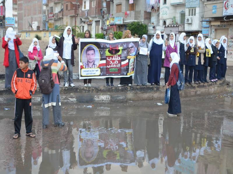 وشارك فى الوقفة طالبات الاعدادى والثانوى والأزهر وقد رفع المشاركات صور للرئيس المنتخب محمد مرسى والشهداء وشارة رابعة ورددت المشاركات "يسقط يسقط حكم العسكر" "الداخلية بلطجية" "