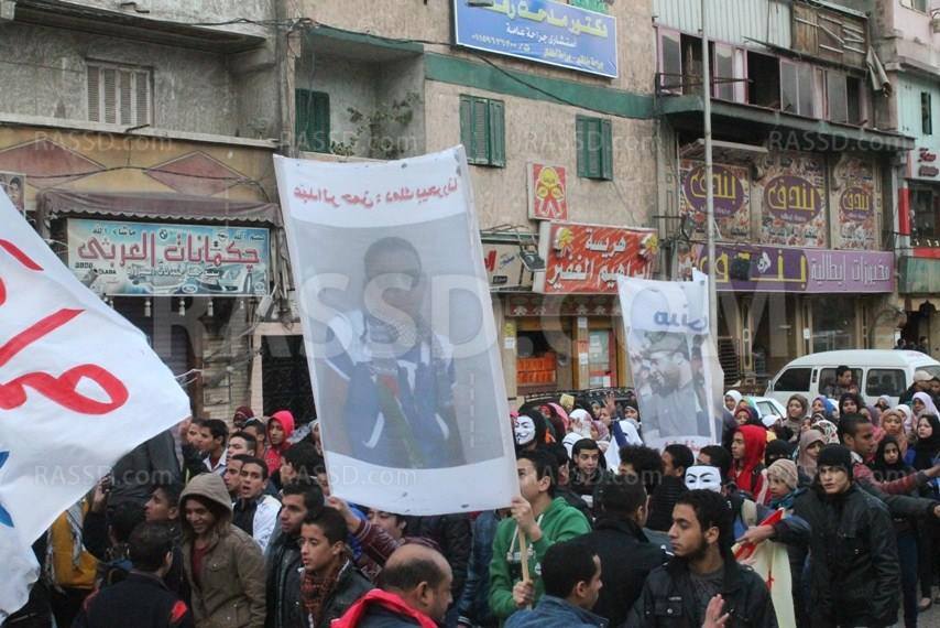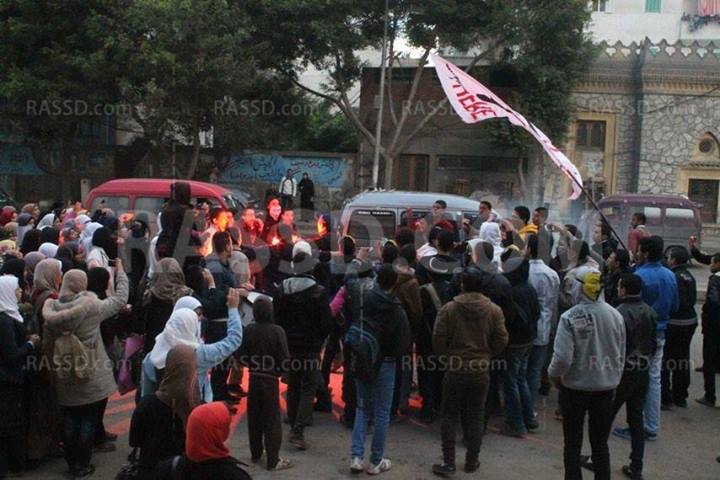 وندد المشاركون بالمسيرة بداخلية الانقلاب واقتحامها للحرم الجامعى وخاصة جامعة الأزهر وقد رفع الطلاب صورة الشهيد "احمد مدنى "عبد الرحمن طارق" وشارة رابعة العدوية وشهدت المسيرة تفاعلا كبيرا من قبل الأهالى والسيارات المارة فى الطريق.
