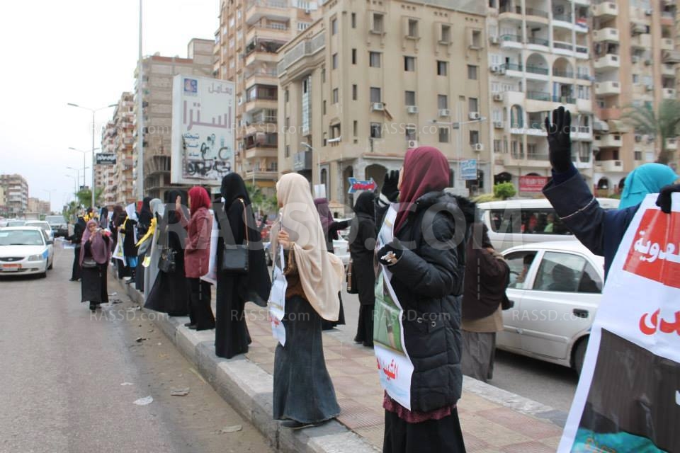نظمت حركة نساء ضد الانقلاب ببورسعيد سلسلة بشرية ظهر اليوم أمام حديقة الأمل بحي المناخ رفضا للانقلاب العسكري و مطالبين بعودة الشرعية والافراج عن المعتقلين