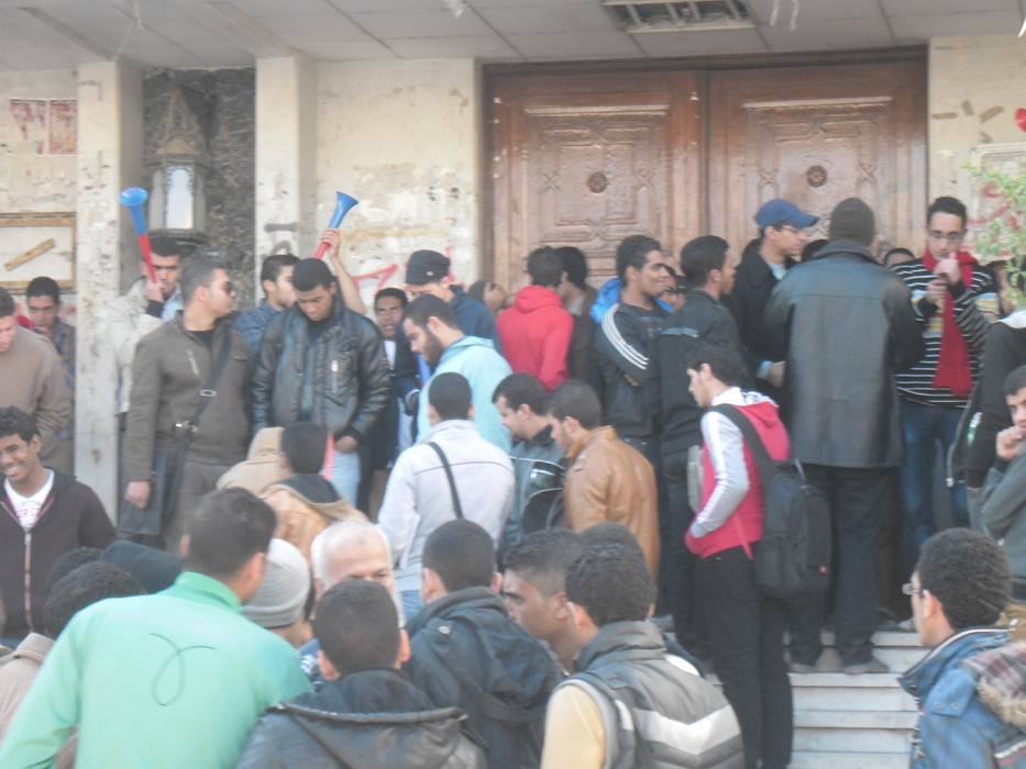 وردد الطلاب هتافات " يسقط يسقط حكم العسكر"و" اضراب"و" وحياة دمك يا شهيد ثورة تانى من جديد"، كما كتبوا على ابواب الكليات"اضراب عن الدراسة".