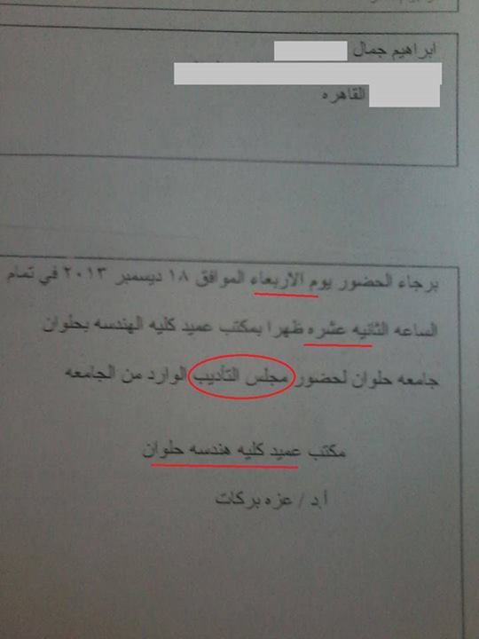 مجالس تأديب لطلبة هندسة حلوان لرفضهم الانقلاب العسكرى