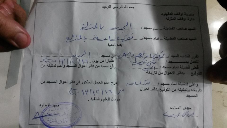 قامت مديرية الأوقاف بالدقهلية بانتداب تعسفى لكبير الأئمة بمدينة المنزلة الشيخ فهمى مشالي وذلك لرفضه الانقلاب العسكرى وتم نقله زاوية صغيرة مترامية الأطراف فى المدينة.