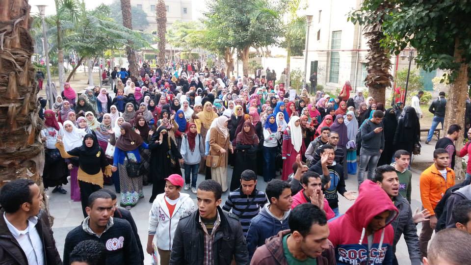 وقد قامت قوات أمن الانقلاب بالاعتداء علي المسيرة في بدايتها بالعصي ، في حين تجمعت الطالبات أمام كلية دار علوم وأكملوا المسيرة وتبعهم الطلاب حتي مكتب رئيس الجامعة.