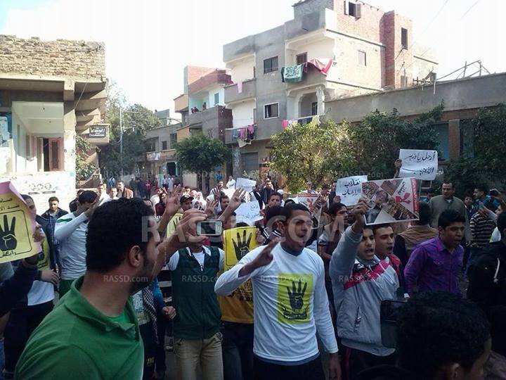 واعترض بعض من البلطجية المسيرة ولم تحدث أى اشتباكات وردد المشاركون هتافات " يسقط يسقط حكم العسكر " ورفع المتظاهرون شارات رابعة العدوية وشهدت المسيرة تفاعل كبير من أهالى القرية .