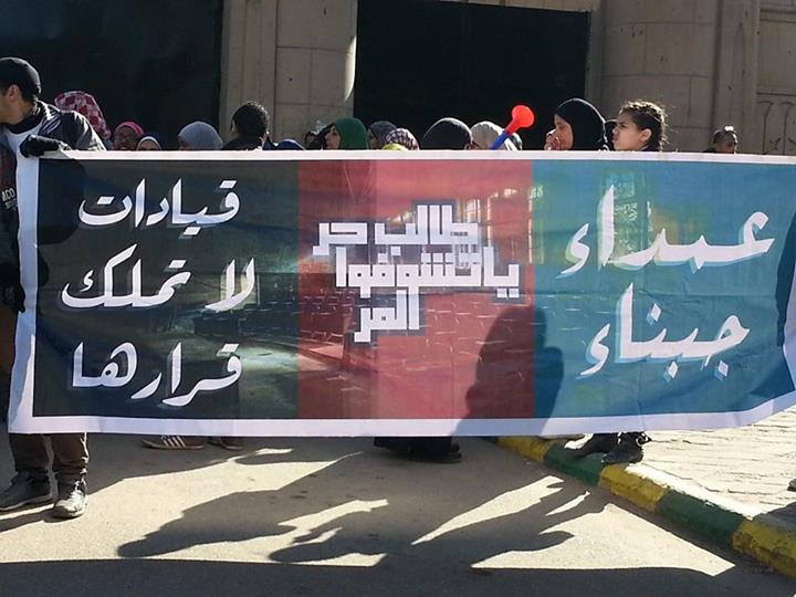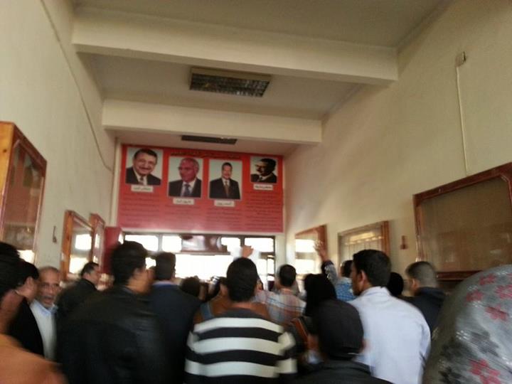 ورفع المشاركون صورا لزملائهم المعتقلين وشارات رابعة العدوية وهتفوا " يسقط يسقط حكم العسكر " " لسه الطالب هو الحل " .