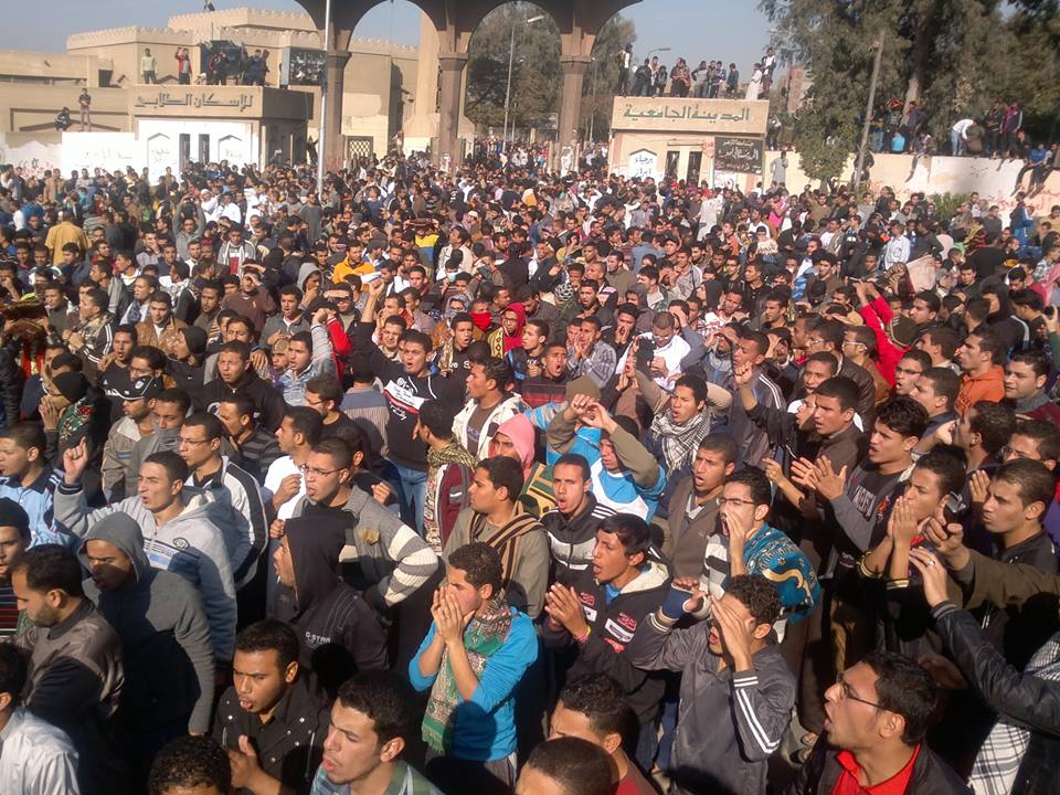 و نظم الطلاب المسيرة احتجاجا على إعتداءات الداخلية علىالمدينة أمس و سقوط شهيد و إصابة العديد من الطلاب بالخرطوش .