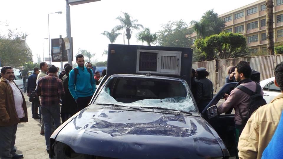 قام طلاب بجامعة عين شمس بتدمير سيارة بوكس تنقل مساجين على بشارع الخليفه المأمون ولم يتم حرق البوكس لتواجد مسجون محبوس لم يستطع الطلاب إخراجه وقد تم الإستيلاء على ملابس الضابط المتواجد فى السيارة ولم يتم الاعتداء عليه وتم خلع نمر السيارة .