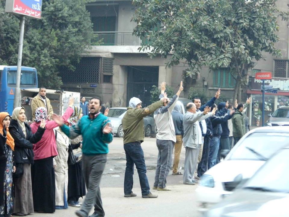 وهتف المتظاهرون بشعارات مؤيده لرابعة،وللرئيس محمد مرسى،رافعين اشارات رابعة العدوية وعلامة النصر مرددين "دى بتاعتنا و دى بتاعتنا حكم العسكر على جثتنا" .