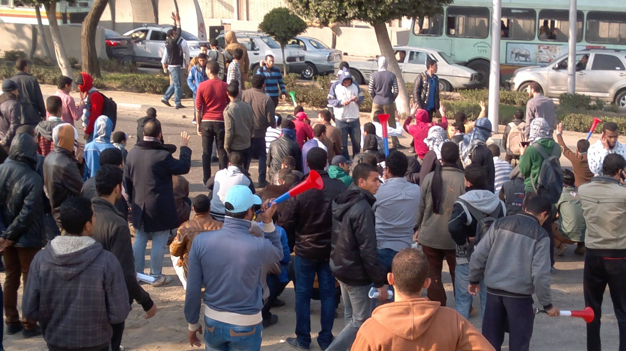 وقامت قوات أمن الإنقلاب بإطلاق قنابل الغاز المسيل للدموع بكثافة كبيرة وطلقات الخرطوش باتجاه التجمع الطلابى لتفريق التظاهرة من امام مبنى أمن الدولة .