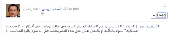 وانتقدت التصريحات المنسوبة للسيسي والتى صف فيها مبارك أنه خائن وأن الجيش لن يحميه مؤكدة أنها سترد عليه الرد المناسب إن لم ينفي هذه التصريحات ، كما نشرت آراء الجيش السابقة في الرئيس مبارك.