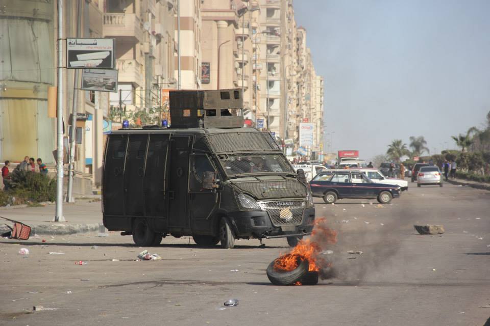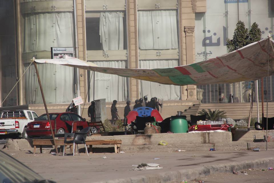 ووصلت المسيرة إلى منطقة  سوق السيارات بعدها قامت قوات الشرطة مزودة بمدرعات فهد ومصفحات وتشكيلات أمن مركزى بالهجوم على المسيرة وإطلاق قنابل الغاز والخرطوش والرصاص الحى وسط اصابات من المتظاهرين.