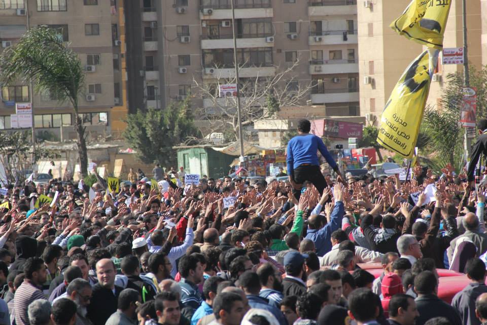 إنطلقت اليوم مسيرة مدينة نصر من مسجد السلام بالحى العاشر بمشاركة طلاب ضد الانقلاب وحملة باطل, رفضا للإنقلاب العسكري و إستعدادا لفاعليات الذكرى الثالثة لثورة يناير .