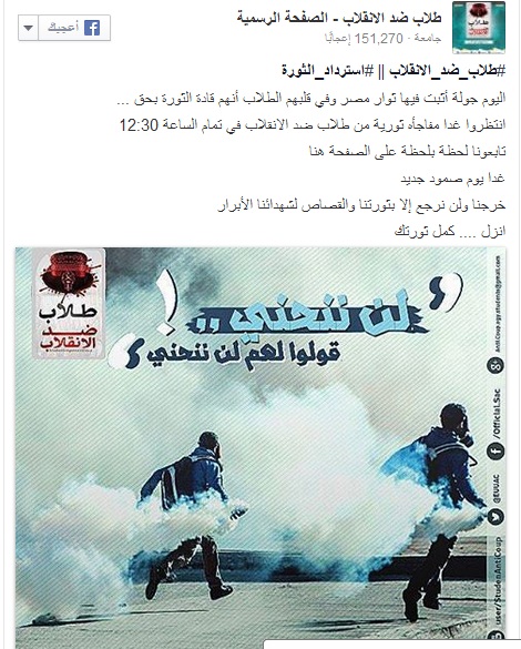 أعلنت حركة طلاب ضد الانقلاب عن مفاجأة اليوم الأحد فى الساعه 12.30 لتظاهرات للحركة الطلابية فى الذكرى الثالة لثورة يناير .