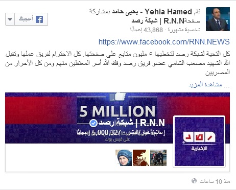 حامد: كل التحية لشبكة رصد لتخطيها 5 ملايين متابع