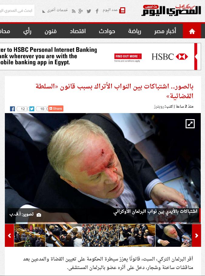 وترجع الصورة لمشاجرة في البرلمان الاوكراني ولكن بزاوية مختلفة ولكن صورة الشخص المصاب في الصورة لبرلماني اوكارني وليس في تركيا مما يعكس نشر الجرائد للشائعات لخدمة الأجندة التي تعمل لها.