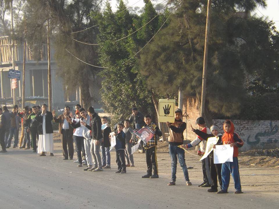 سلسلة بشرية منددة بالإنقلاب بالشرقية
