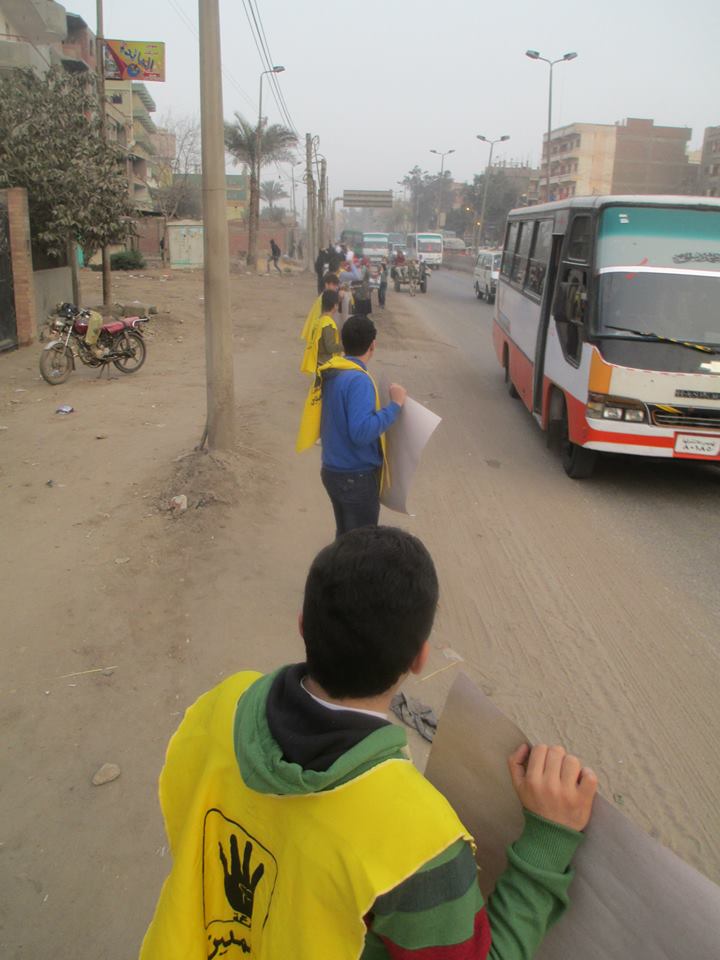 نظم التحالف الوطني لدعم الشرعيه في مدينة العاشر من رمضان بمحافظة الشرقية سلسله بشرية في الساعة 7 من صباح اليوم، ورفع المشاركون أعلام مصر، وشارات رابعة، ولافتات تندد بحكم العسكر .