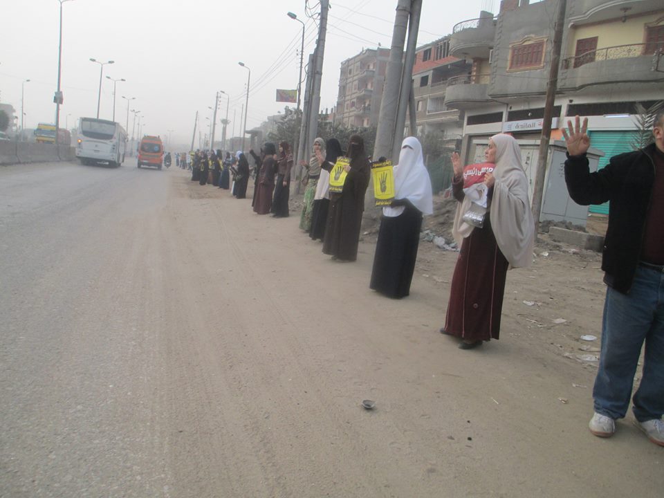 سلاسل بشرية في الشرقية تندد بممارسات الانقلاب وتطالب بالقصاص
