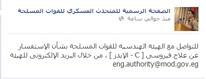 ونشر المتحدث العسكرى اليوم عبر صفحته على "فيس بوك" "إيميل" للتواصل مع الهيئة .