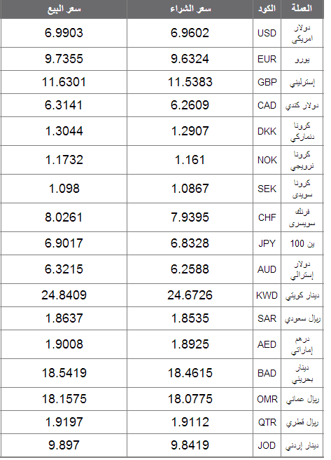 والجدول التالى يوضح سعر صرف العملات فى البنوك المصرية