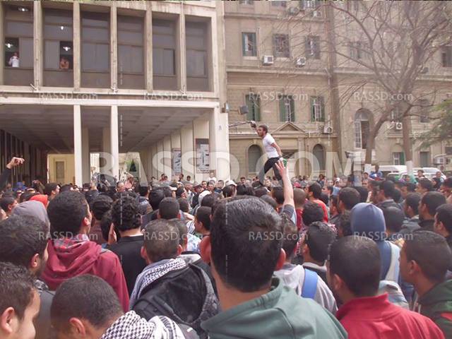 نظم اليوم طلاب ضد الإنقلاب فى جامعة القاهرة مسيرة طلابية حاشدة ،  انطلقت من العديد من الكليات لتلتقى عند المكتبة المركزية للجامعة ،  معلنة عن غضب الطلاب من موقف الحكومة المصرية فى استمرار غلقها لمعبر رفح ورفضها مساعدة الأشقاء الفلسطنين .