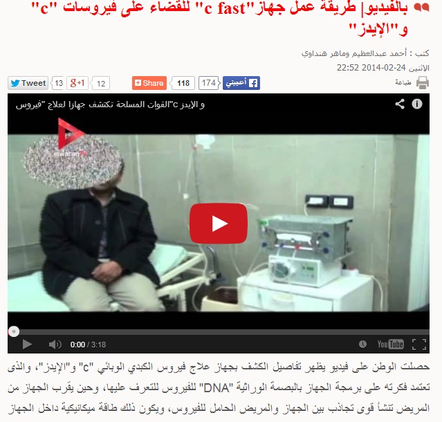 ونشرت الوطن بعد ذلك بيوم شرحا مفصلًا قدمت الجريدة بالفيديو للجهاز الخطير تحت عنوان "بالفيديو| طريقة عمل جهاز"c fast" للقضاء على فيروسات "c" و"الإيدز".