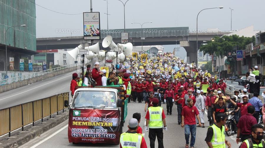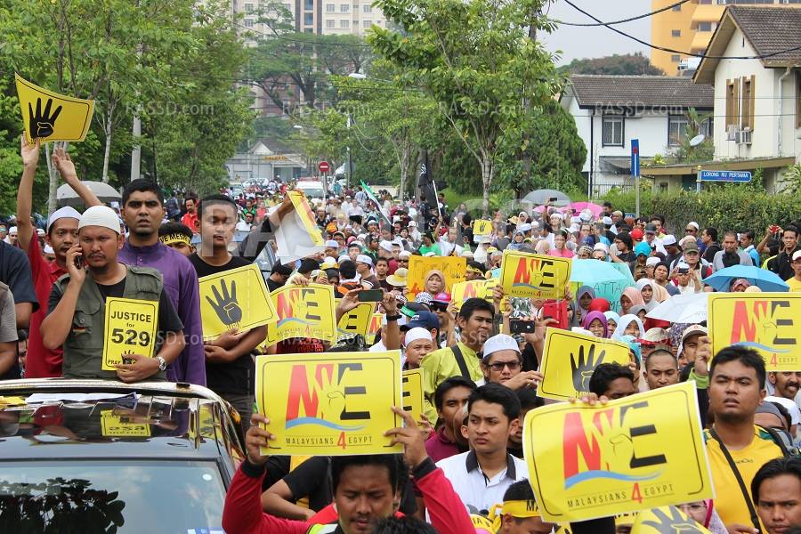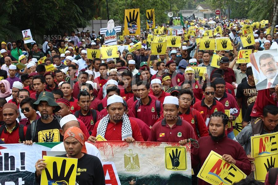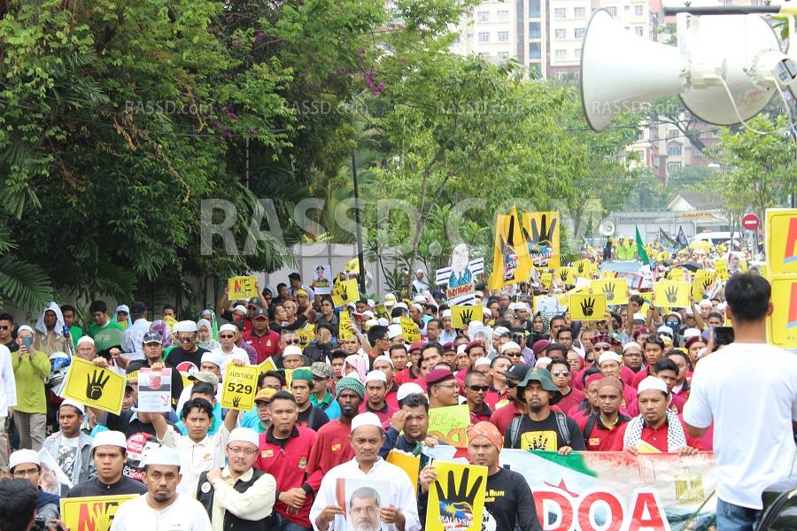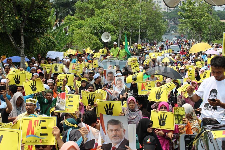 نظم الحزب الحاكم بالعاصمة الماليزية كوالالمبور بالتعاون مع حزب المعارضة الإسلامي "الباص"  – صباح اليوم الجمعة – مسيرة حاشدة ، رافضة للانقلاب العسكري بمصر .