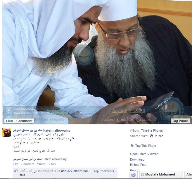 أكد حاتم الحويني-نجل ومساعد الشيخ أبو إسحق الحويني- ان والده يؤيد اهل الاصلاح الذين يسبحون ضد التيار المجرم الذي يملك السلطة والاعلام وأن اهل الصلاح معهم الله -حسب قله-.