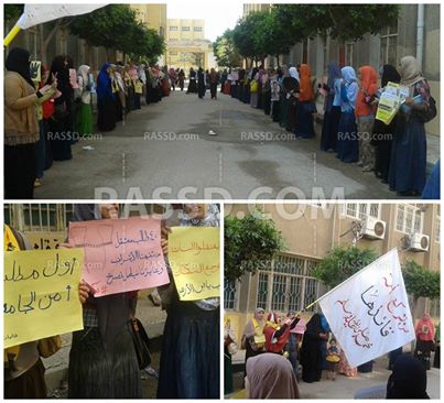 سلسلة بشرية لطالبات أزهر تفهنا الأشراف ضد حكم العسكر