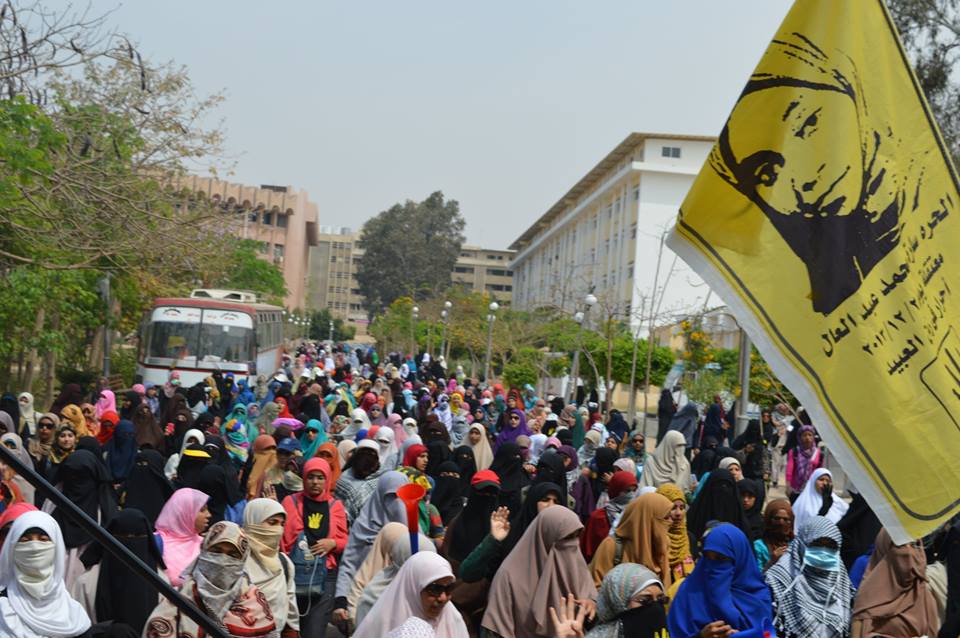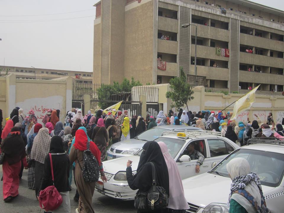 خرجت طالبات جامعة الأزهر في القاهرة بمسيرة حاشدة – ظهر اليوم الأربعاء – جابت أنحاء الحرم الجامعي ثم توجهت إلى شارع مصطفى النحاس، وشارع الطيران، ومنه إلي داخل المدينة الجامعية ، تضامنا مع زميلاتهن الخمس المعتقلات من يوم 24/12 والمحكوم عليهن بالسجن 5 سنوات.