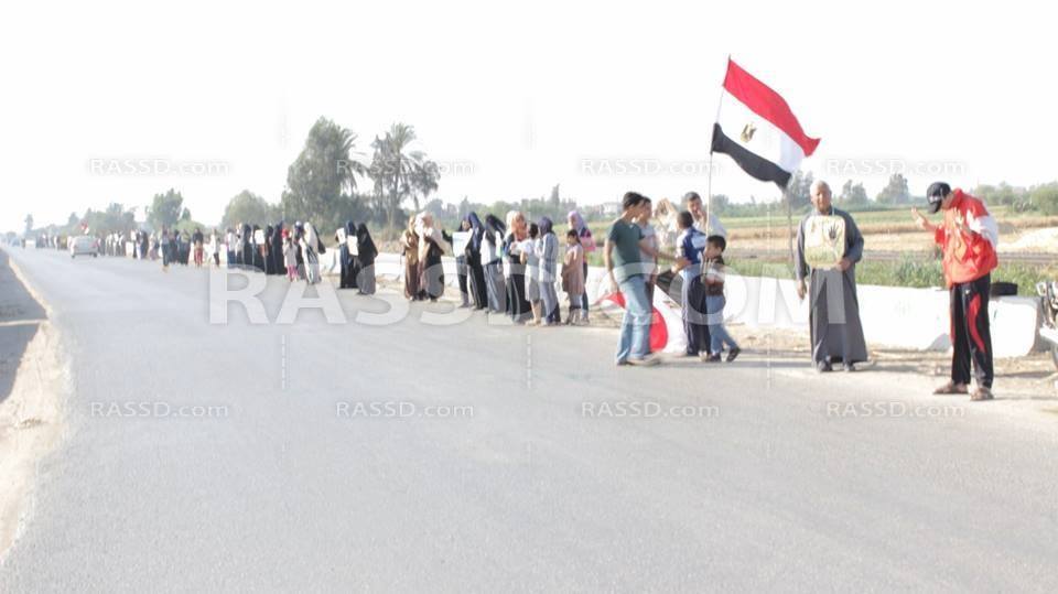 نظم التحالف الوطنى لدعم الشرعية ورفض الانقلاب، سلسلة بشرية – صباح اليوم – أمام قرية السعادات بمدينة بلبيس بمحافظة الشرقية على طريق "بلبيس – الإسماعيلية"الزراعي.