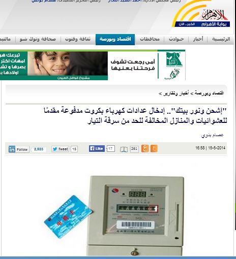 أعلنت وزارة الكهرباء والطاقة المتجددة بحسب جريدة الأهرام الحكومية، البدء بإدخال العدادات الرقمية المدفوعة مقدمًا، للمناطق العشوائية والتى تستهلك كهرباء بطرق غير قانونية، وذلك من أول شهر يونيو المقبل.