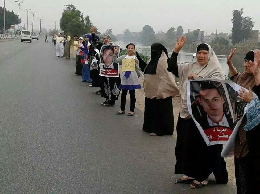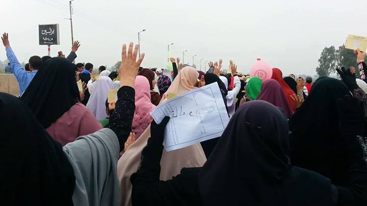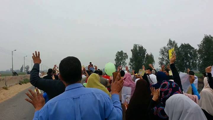 وفي سياق متصل، نظم أهالي مدينة السنبلاوين سلسلة بشرية، تبعتها مسيرة حاشدة على طريق "السنبلاوين- برقين" اعتراضا منهم على انتخابات العسكر والتى وصفوها بـ"انتخابات الدم".