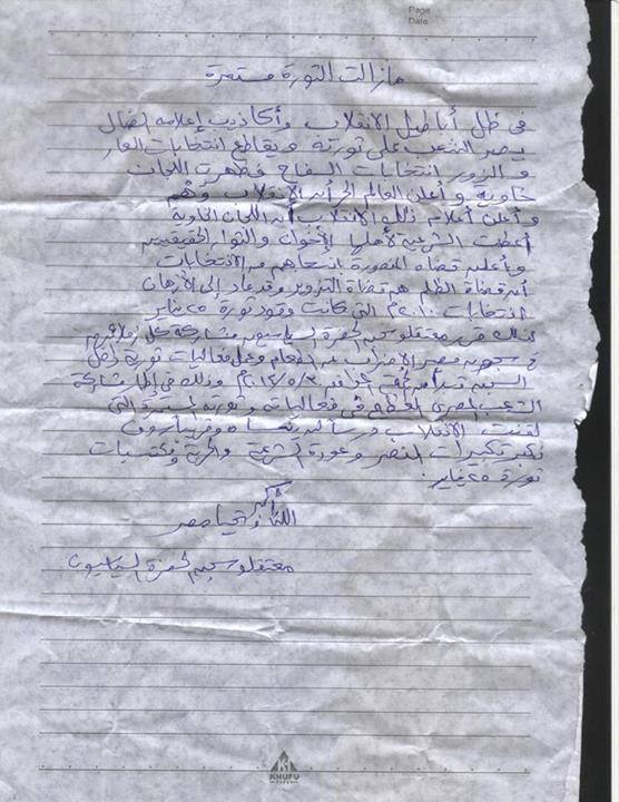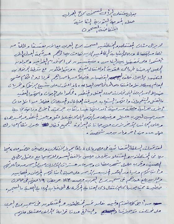 وأظهرت بيانات مسربة من سجن برج العرب ووادي النطرون والحضرة، بعضا من الانتهاكات التي يعانيها مناهضوا الانقلاب العسكري في سجون العسكر، إضافة لشكر الثوار في الميادين على إنجاح المقاطعة الشعبية لمسرحية تنصيب عبد الفتاح السيسي قائد الانقلاب رئيساً للجمهورية واغتصابه كرسي السلطة.