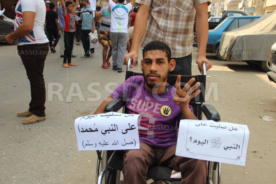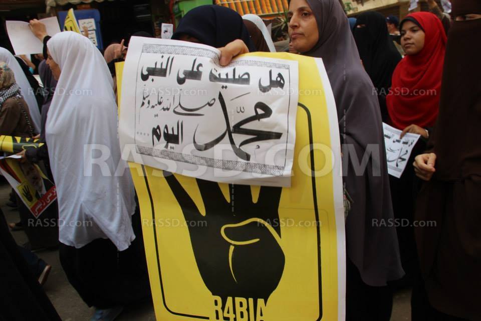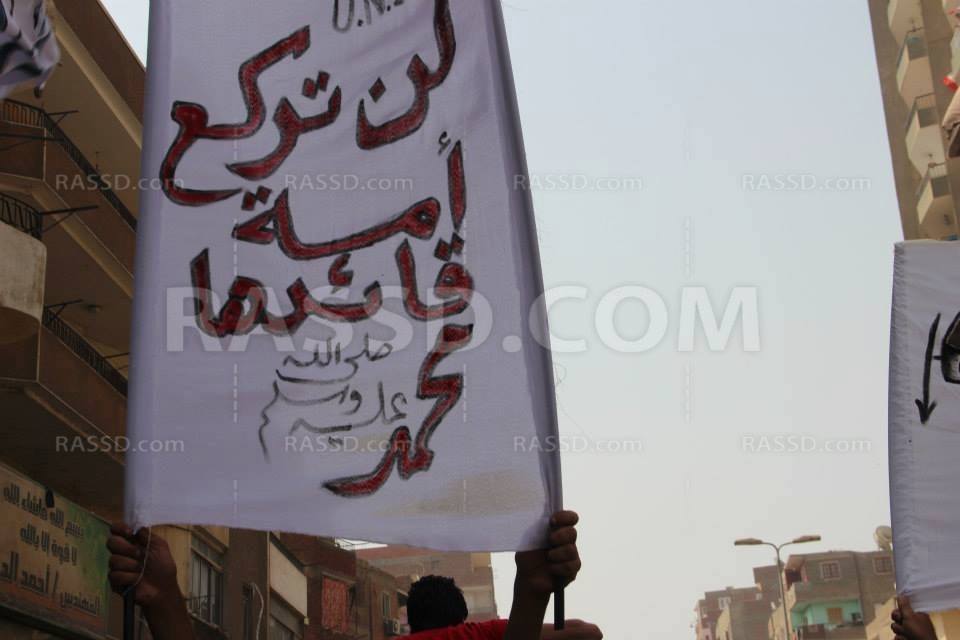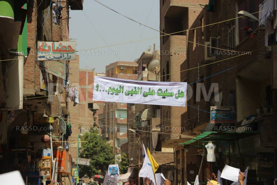 ورفع المشاركون صور الرئيس محمد مرسى وشارات رابعة، كما قاموا برفع ورقة "هل صليت على النبى اليوم" اعتراضًا على إزالتها من قبل داخلية الانقلاب.