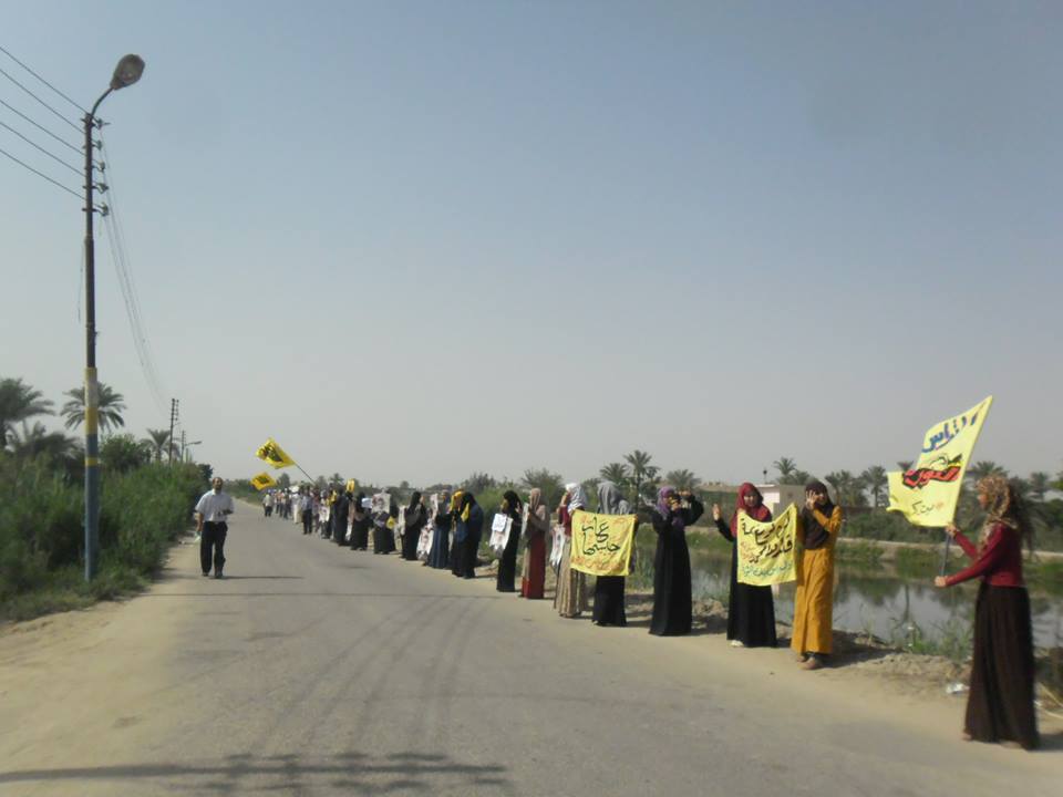 وعلى طريق الإسماعيلية الزقازيق الزراعي نظم الثوار سلسلة بشرية، ورفع المشاركون في الفعاليات شارة رابعة وصور الرئيس محمد مرسي ونددوا بجرائم الانقلاب وإحالة أوراق أحرار الوطن للمفتي، كما نددوا باعتقال حرائر مصر وطالبوا جموع الشعب بالدفاع عن كرامتة والوقوف في وجه مغتصبي السلطة – على حد وصفهم.